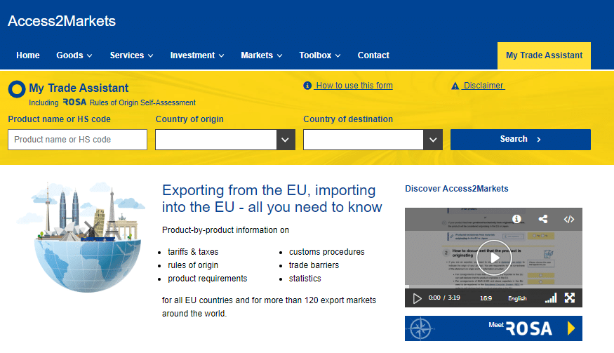L’outil d’auto-évaluation d’Access2Markets, ROSA, fournit une assistance spéciale sur les règles qui définissent la «nationalité économique» d’un produit, appelée «règles d’origine». Celles-ci sont conçues sur mesure dans chaque accord commercial, garantissant que les secteurs sensibles du marché sont protégés et que les entreprises peuvent réclamer des droits de douane réduits ou supprimés, conformément à l’accord. Les entreprises peuvent également trouver des informations sur la manière dont les accords commerciaux réglementent le commerce des services ou sur les conditions d’investissement, ou participer à des appels d’offres publics sur un marché étranger. Chaque produit commercialisé au niveau international a un code qui détermine les droits d’importation et les taxes