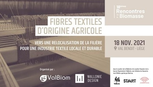 Le 18 novembre prochain, ValBiom et Wallonie Design, avec le soutien d’EEN Wallonie, organisent » Les 18èmes Rencontres de la Biomasse » à Liège sur le thème » Fibres textiles d’origine agricole – vers une relocalisation de la filière pour une industrie textile locale et durable « .